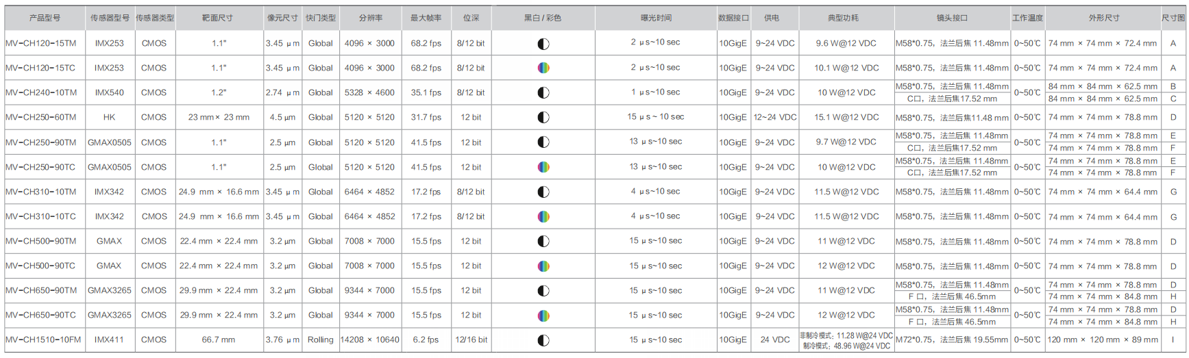 首頁 / 産品中心 / 工業相機 / CH 系列萬兆網工業面陣相機