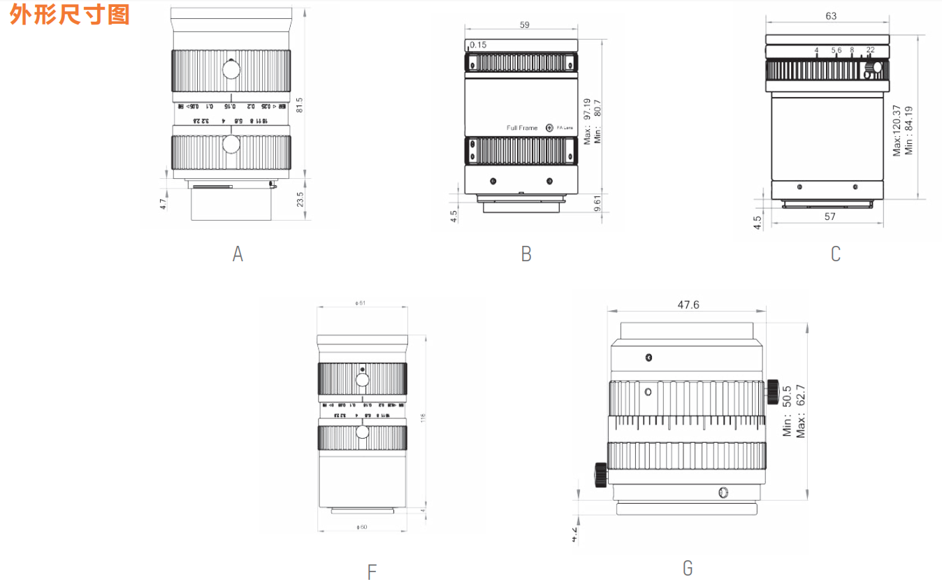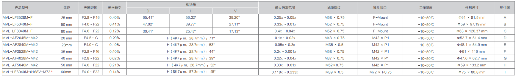 FA鏡頭靶面覆蓋範圍廣,不僅支持1/1.8",2/3",1.1"等小(xiǎo)靶面相機,還(hái)涵蓋30~66mm等多(duō)種大(dà)靶面規格