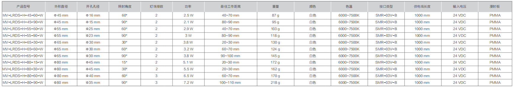 MV-LRDS-H标準環形光源,提供多(duō)種尺寸、照射角度規格型号,內(nèi)置高(gāo)品質LED,在确保光照集中度的同時(shí),提升內(nèi)部散熱設計(jì),确保光源工作(zuò)穩定高(gāo)效。