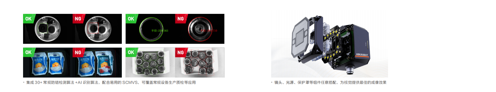 SC2000E 在極小(xiǎo)機身內(nèi)配置了視(shì)覺系統的全套功能:照明(míng)、采集、處理(lǐ)、通(tōng)信,在 3C 電(diàn)子、新能源、制(zhì)造等行(xíng)業中的防錯檢測場(chǎng)景表現優秀,為(wèi)有(yǒu)無、正反等驗證工序帶來(lái)全新選擇。