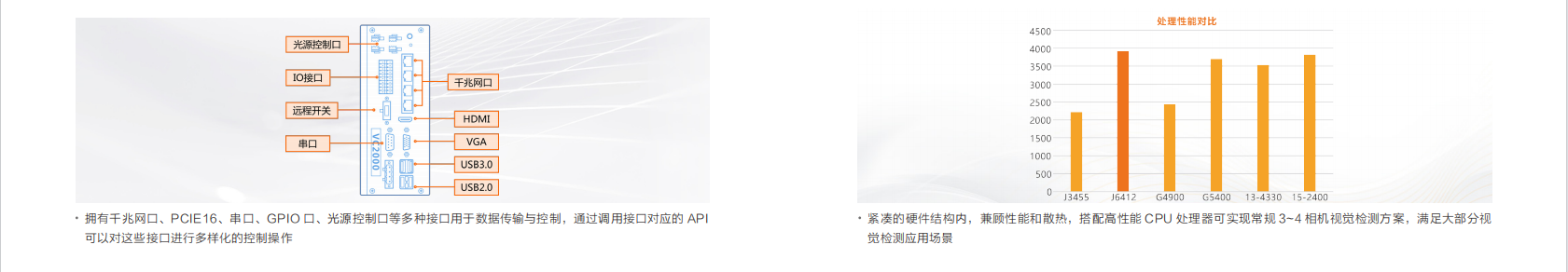 VC2000 系列視(shì)覺控制(zhì)器(qì)搭載 Intel 高(gāo)性能處理(lǐ)芯片,配備了豐富的數(shù)據采集與控制(zhì)接口;整機結構緊湊,性能卓越, 為(wèi)多(duō)相機簡單視(shì)覺應用提供完整解決方案。